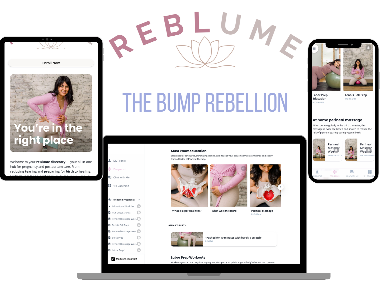 Four sessions per week of guided pelvic floor exercises to strengthen, relax, and optimize for birth from the second trimester to the end of the fourth trimester